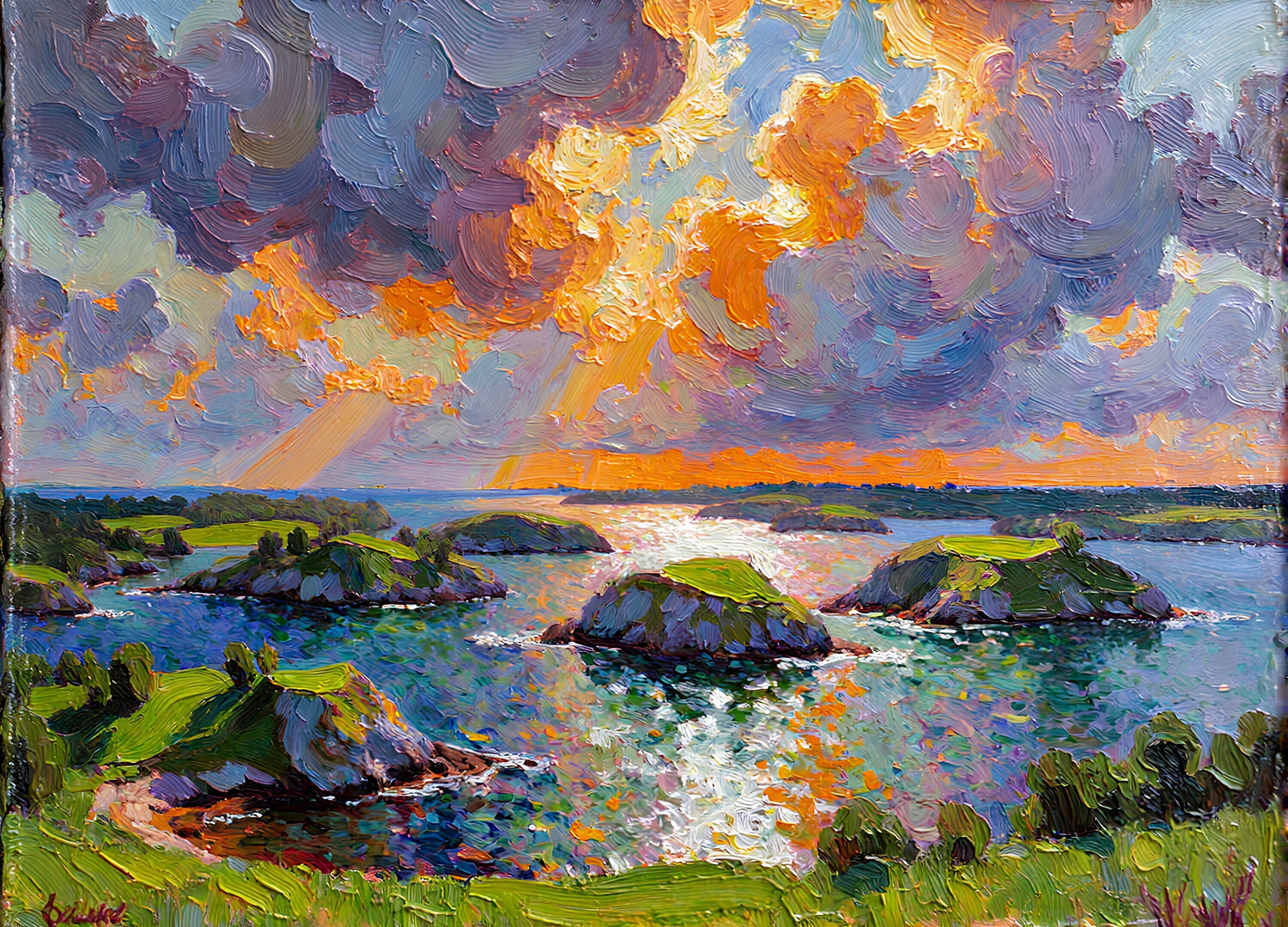 鮮やかな色彩のコントラストと厚塗りの技法