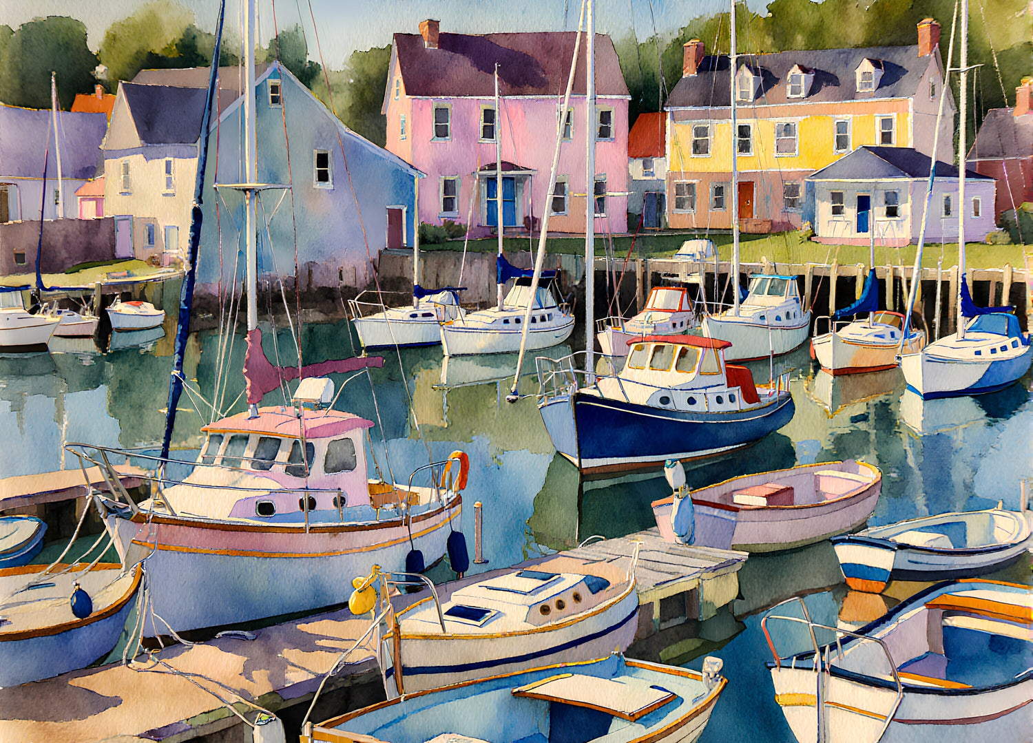 初夏の朝のマリーナの風景をイラスト風に描いてみました。