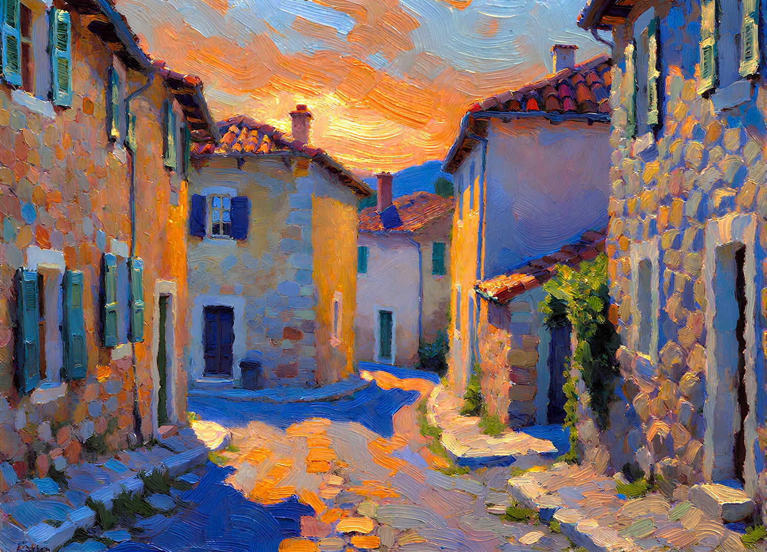 初夏の夕暮れ時の南欧の田舎道