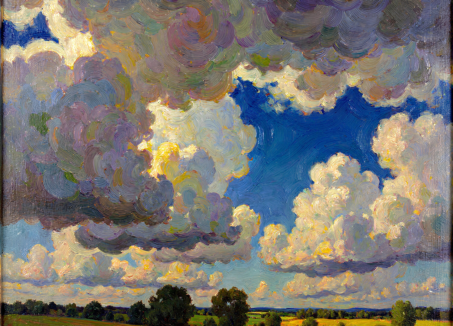 大きな雲が空を覆っていて、雲の隙間から真っ青な空が見える。
