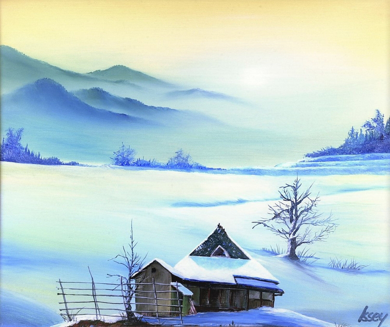 積雪に覆われた農家・・・サンサンと朝日を浴びる。