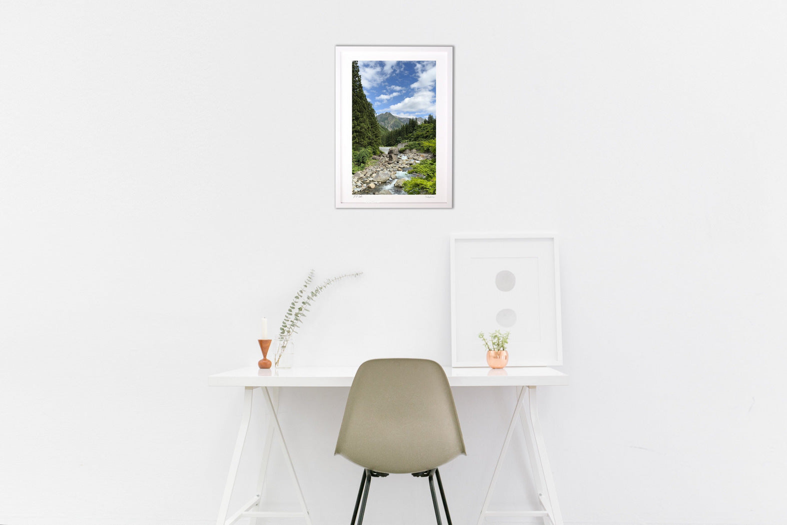 あゆわらの企画・制作・販売の作品。 画用紙のような質感の高級アート紙を採用。 発色が豊かなので繊細な色を忠実に再現。 印画紙ではないので、絵なのか写真なのか迷う不思議な印象です。 紙に光沢がなく、光を反射しないので、 蛍光灯の光で作品が見えづらくなることもありません。 色の再現性もこだわりました。 色調整は、最新技術で厳密に行うことが出来ます。正確に色を再現できるデジタル印刷で一枚一枚制作。 品質をチェックし、合格したものにあゆわらのエンボス印を入れて完成となります。