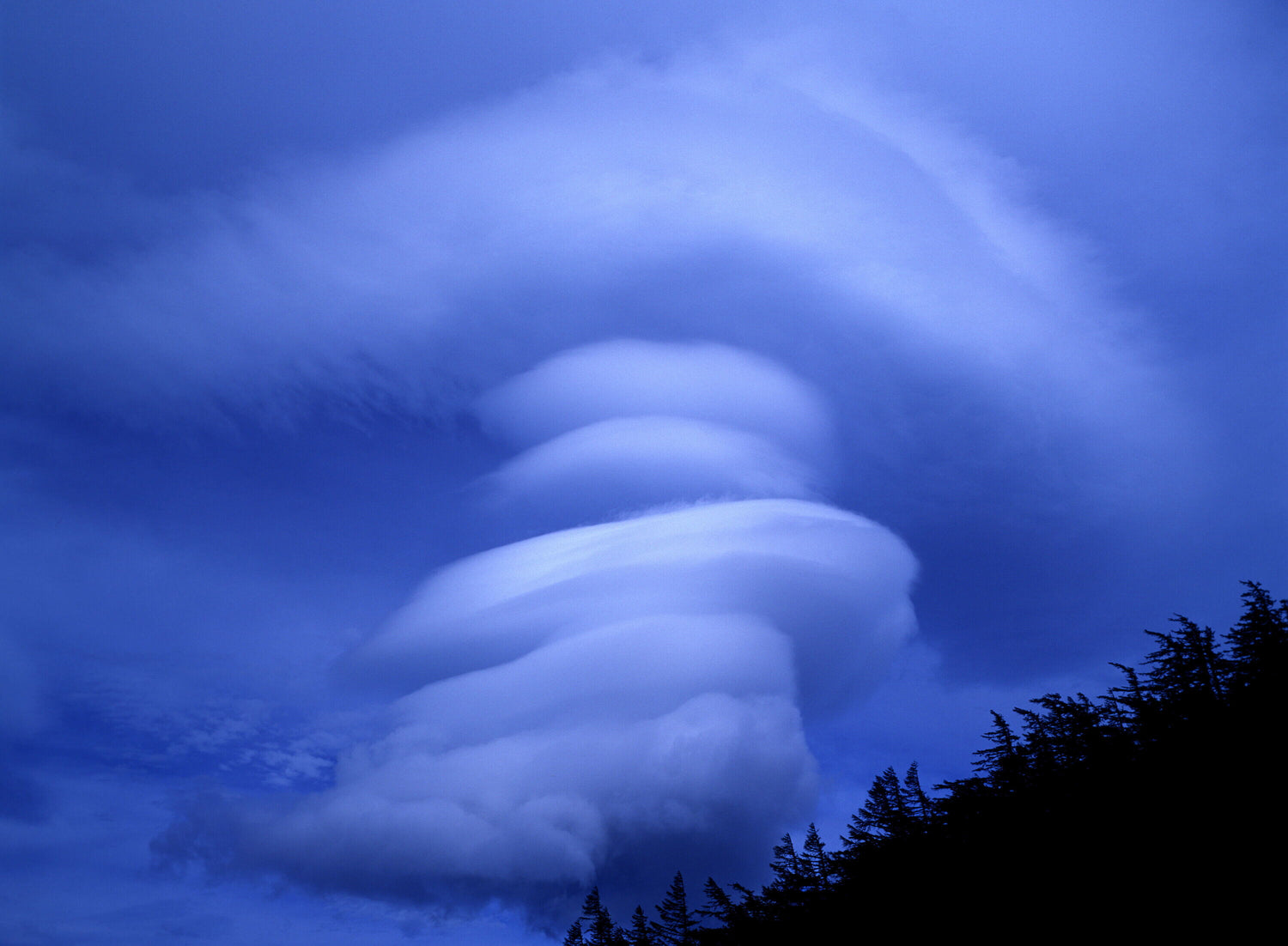 富士山の風下にできる吊るし雲 滝沢林道で遭遇した。原爆の時見られる きのこ雲のようで 非常に感動的であった。右下の黒い部分が