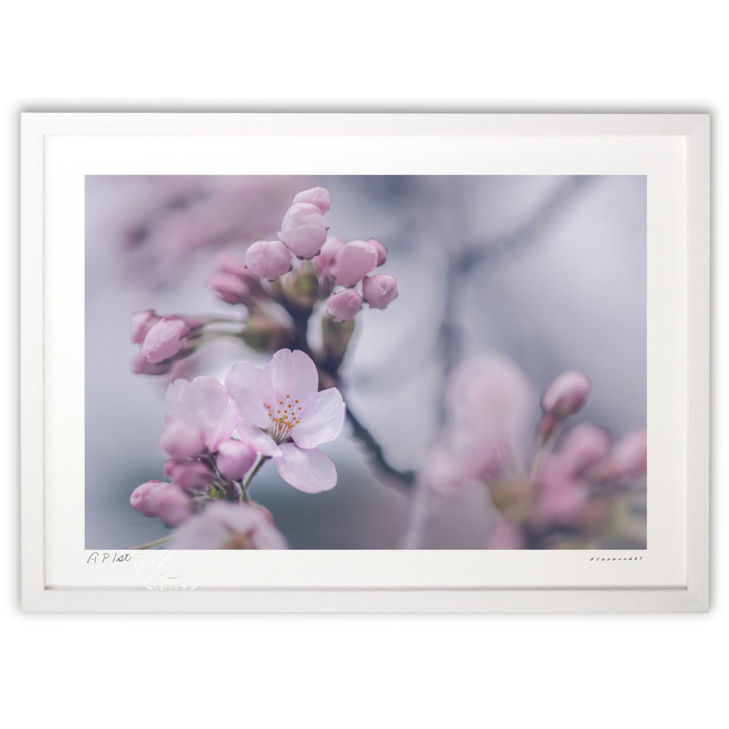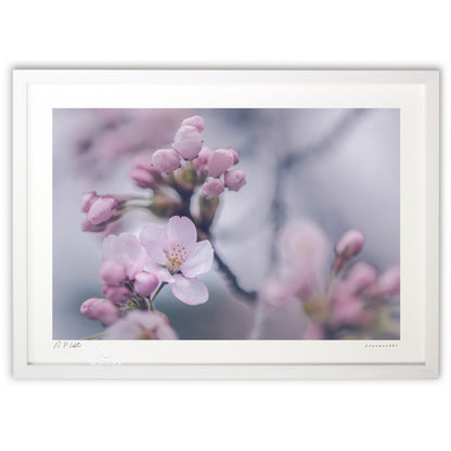 花春の訪れを告げる桜の蕾と花が、淡い光の中で静かに咲き誇り、柔らかなピンクのグラデーションとぼかしの効いた背景が、幻想的で優しい空気をまとい、心を穏やかにし日常にそっと彩りを添える様な作品として仕上げました。