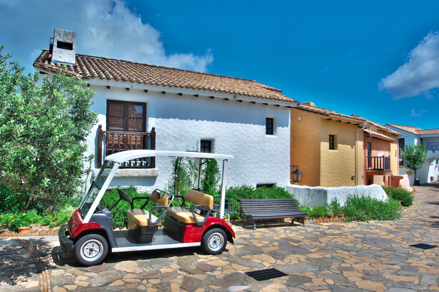 石畳の小道に映る影、カートのアクセントカラー、そして揺れる緑の植栽すべてが調和し、異国の陽気な風を感じさせてくれます。