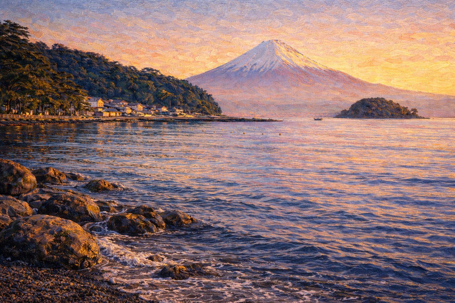 派手さではなく、静けさと余韻で魅せる海景。見る人の呼吸を整え、心を“やさしい遠景”へ導く一枚です。