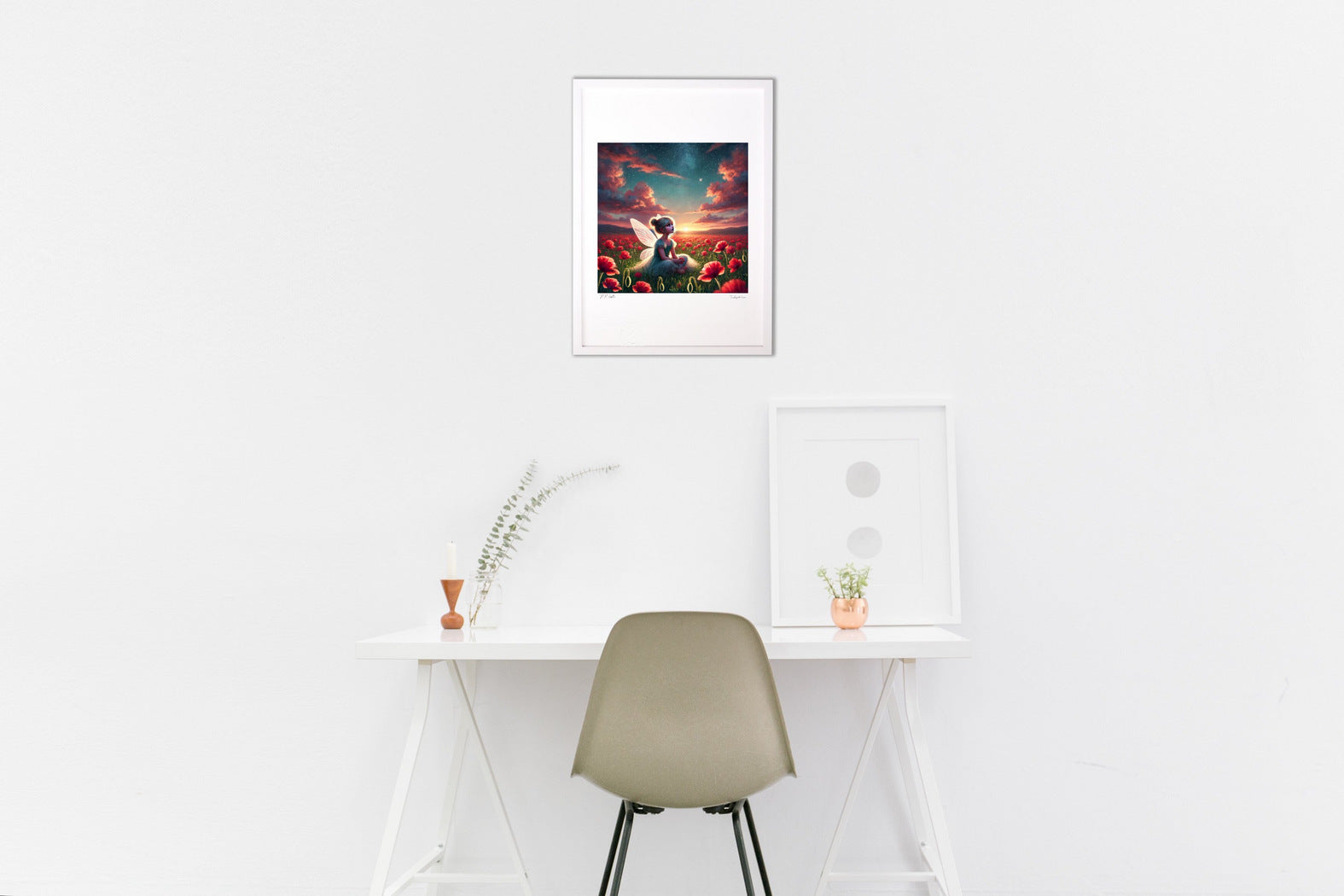 あゆわらの企画・制作・販売の作品。 画用紙のような質感の高級アート紙を採用。 発色が豊かなので繊細な色を忠実に再現。 印画紙ではないので、絵なのか写真なのか迷う不思議な印象です。 紙に光沢がなく、光を反射しないので、 蛍光灯の光で作品が見えづらくなることもありません。 色の再現性もこだわりました。 色調整は、最新技術で厳密に行うことが出来ます。正確に色を再現できるデジタル印刷で一枚一枚制作。 品質をチェックし、合格したものにあゆわらのエンボス印を入れて完成となります。