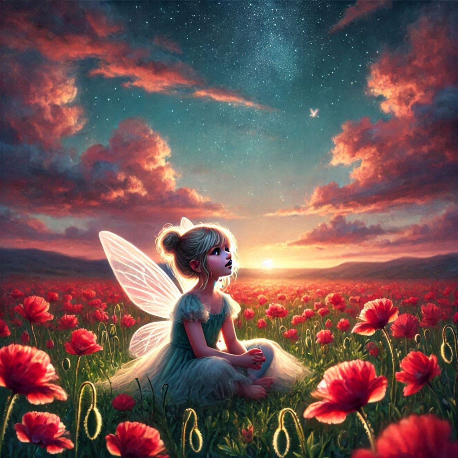 昼から夜に変わる時をゆったりと感じている妖精の女の子