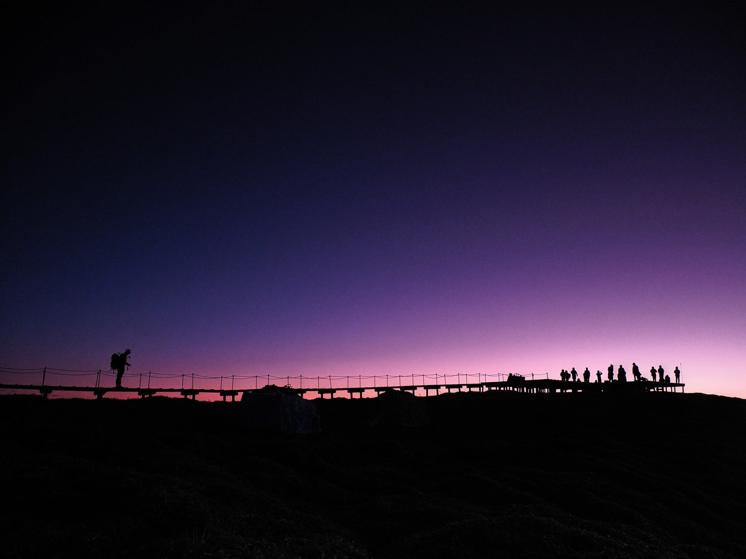 徳島剣山山頂からの朝焼け。朝陽を見てから登山者は出発する。
