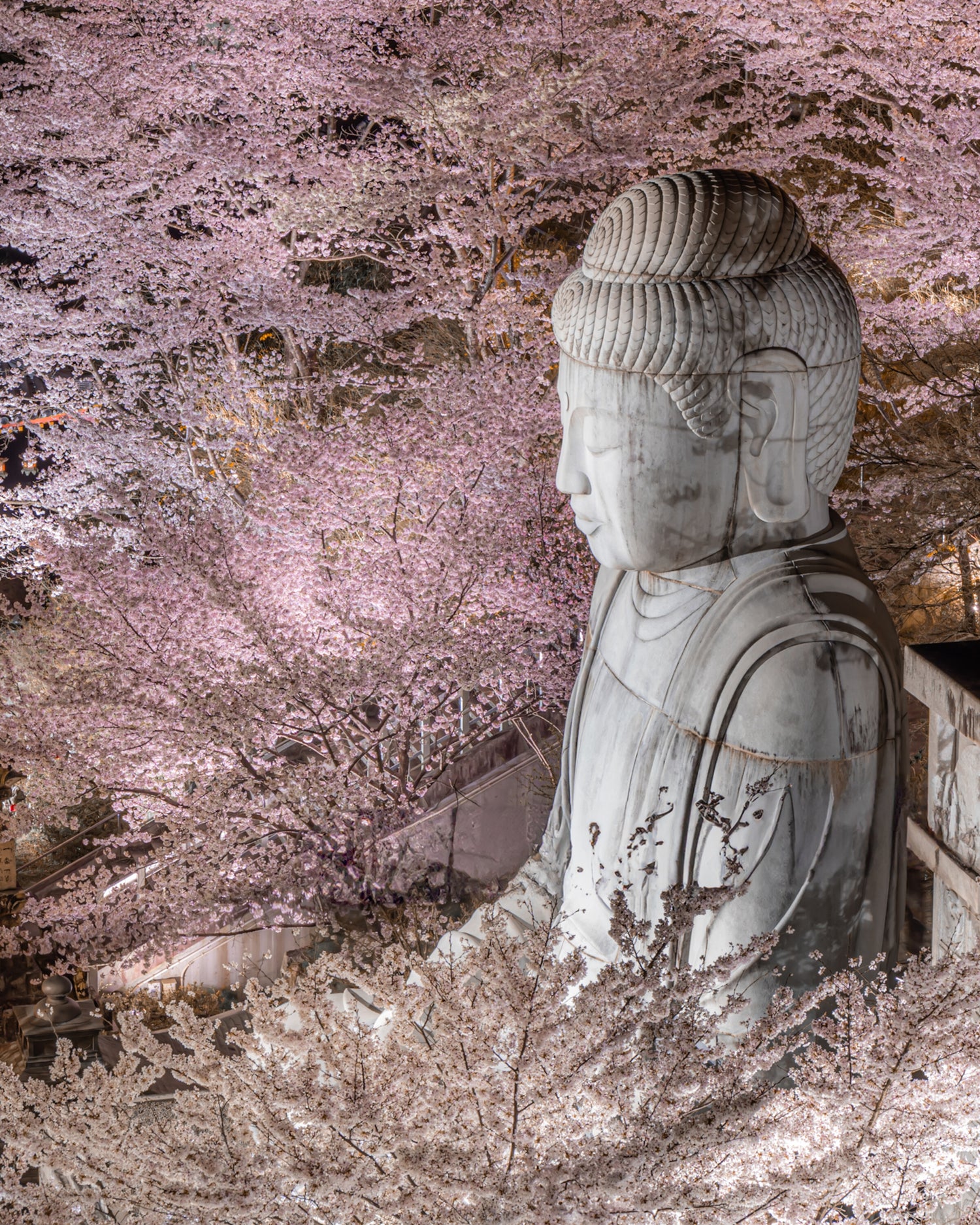 奈良にある有名な寺で桜と大仏を撮影しました。