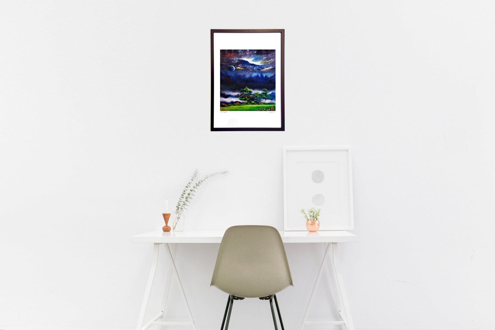 フレームカラーは作品画像の額縁でお届けします。 ご希望があれば変更も可能。ホワイト・ナチュラル・ブラウン・ブラックからお選び頂けます。ご希望の場合は、ご注文時備考欄に「○○フレーム希望」とご記入ください。