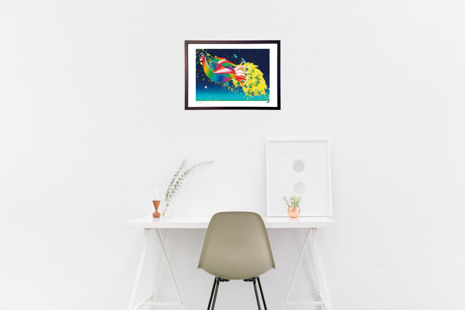 一度は、酉年の年賀状に使用したのを、背景に宇宙を付け、宇宙に舞う鳳凰にしました。