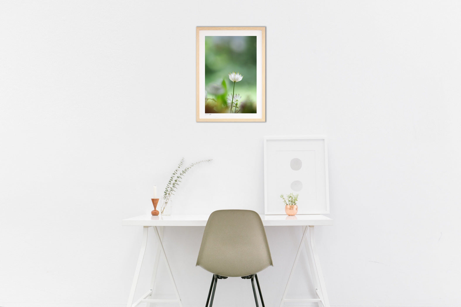 あゆわらの企画・制作・販売の作品。 画用紙のような質感の高級アート紙を採用。 発色が豊かなので繊細な色を忠実に再現。 印画紙ではないので、絵なのか写真なのか迷う不思議な印象です。 紙に光沢がなく、光を反射しないので、 蛍光灯の光で作品が見えづらくなることもありません。 色の再現性もこだわりました。 色調整は、最新技術で厳密に行うことが出来ます。正確に色を再現できるデジタル印刷で一枚一枚制作。 品質をチェックし、合格したものにあゆわらのエンボス印を入れて完成となります。