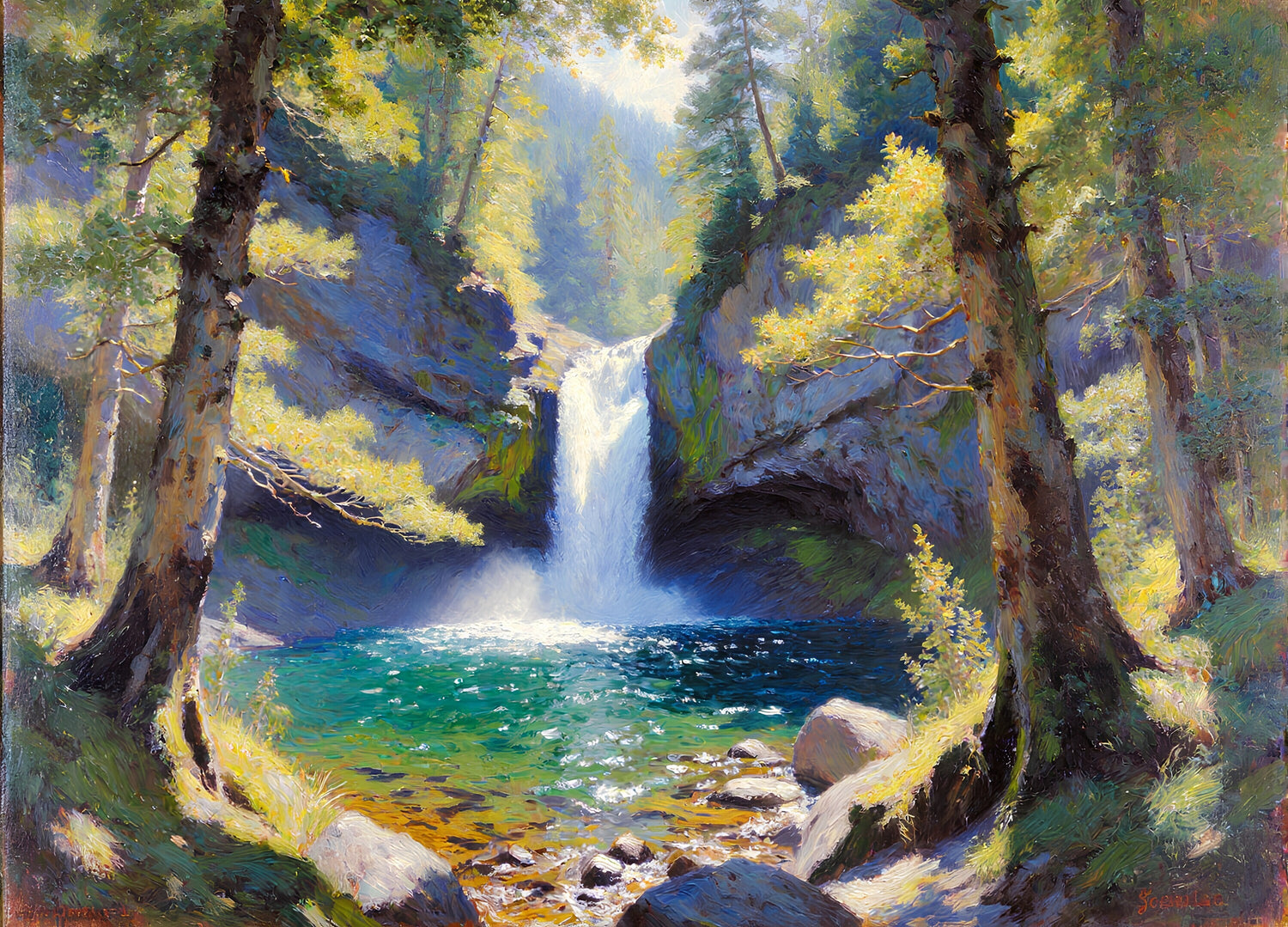 山奥に木々に囲まれ深く大きな水の澄んだ滝壺がある。