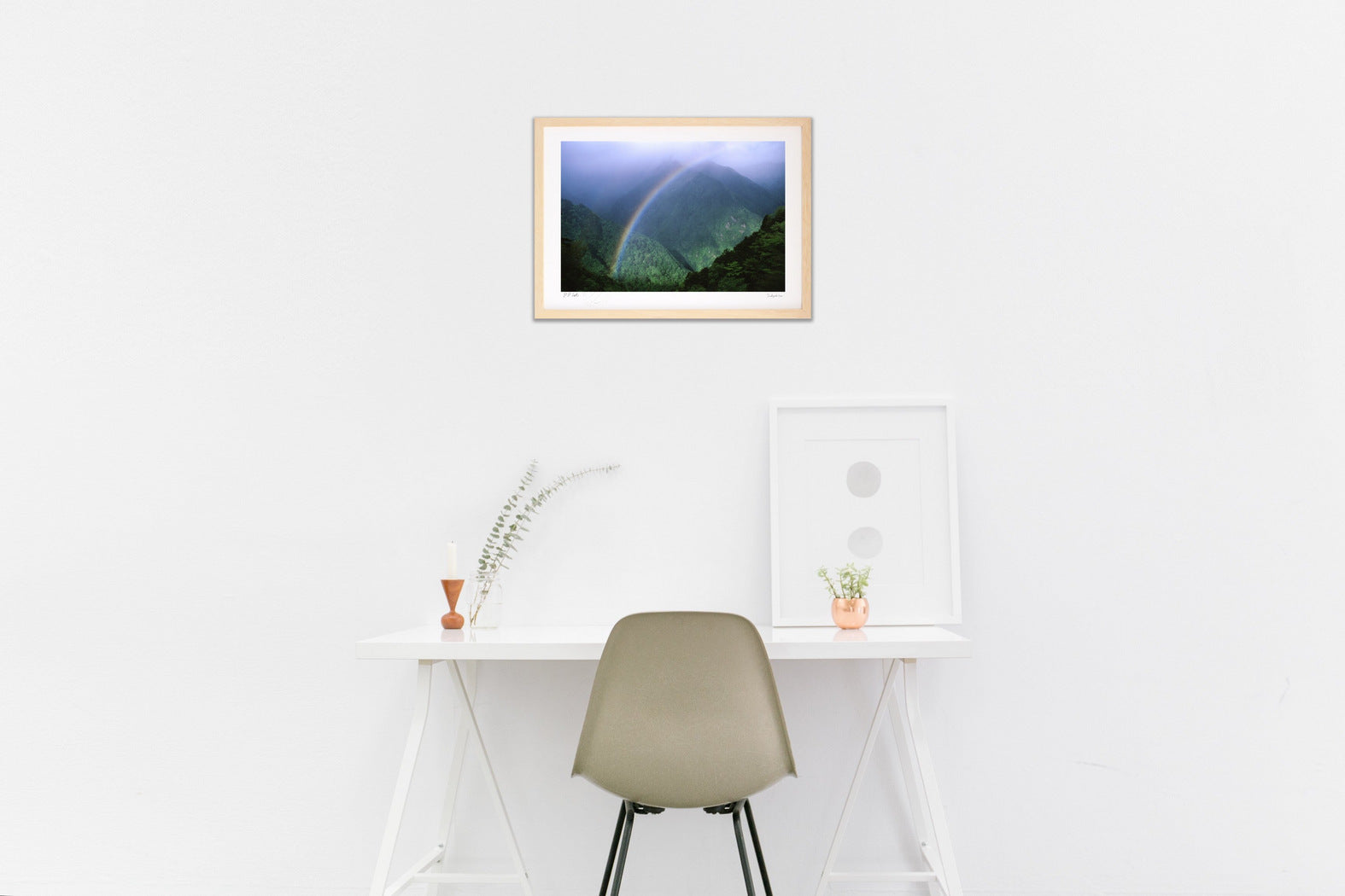 フレームカラーは作品画像の額縁でお届けします。 ご希望があれば変更も可能。ホワイト・ナチュラル・ブラウン・ブラックからお選び頂けます。ご希望の場合は、ご注文時備考欄に「○○フレーム希望」とご記入ください。
