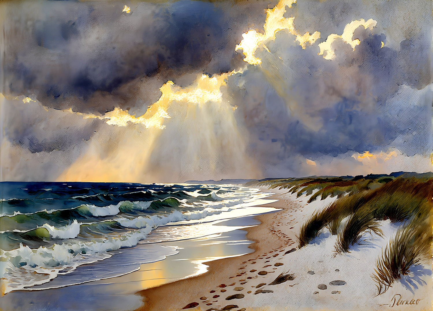嵐が過ぎ去り、暗い雲の合間から明るい日が差しています。