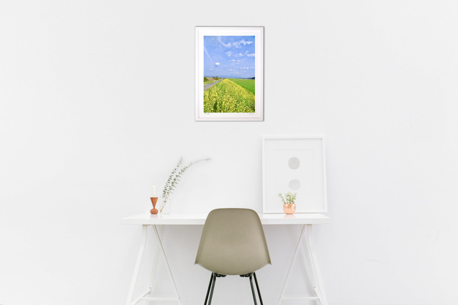 あゆわらの企画・制作・販売の作品。 画用紙のような質感の高級アート紙を採用。 発色が豊かなので繊細な色を忠実に再現。 印画紙ではないので、絵なのか写真なのか迷う不思議な印象です。 紙に光沢がなく、光を反射しないので、 蛍光灯の光で作品が見えづらくなることもありません。 色の再現性もこだわりました。 色調整は、最新技術で厳密に行うことが出来ます。正確に色を再現できるデジタル印刷で一枚一枚制作。 品質をチェックし、合格したものにあゆわらのエンボス印を入れて完成となります。