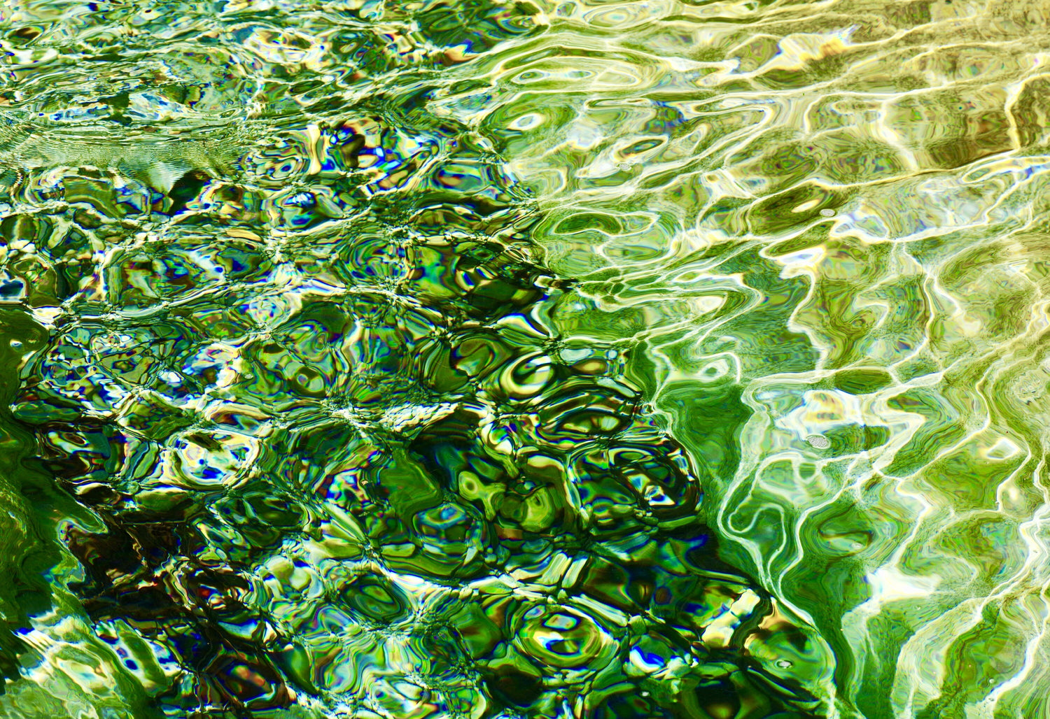 長野県大桑村阿寺渓谷 透明度の高い水と散乱する光の調和により 美しいエメラルドグリーンの織りなす光景がみられる。良く観察していると 肉眼では見られないような美しい彩る波紋のアートが見られる。