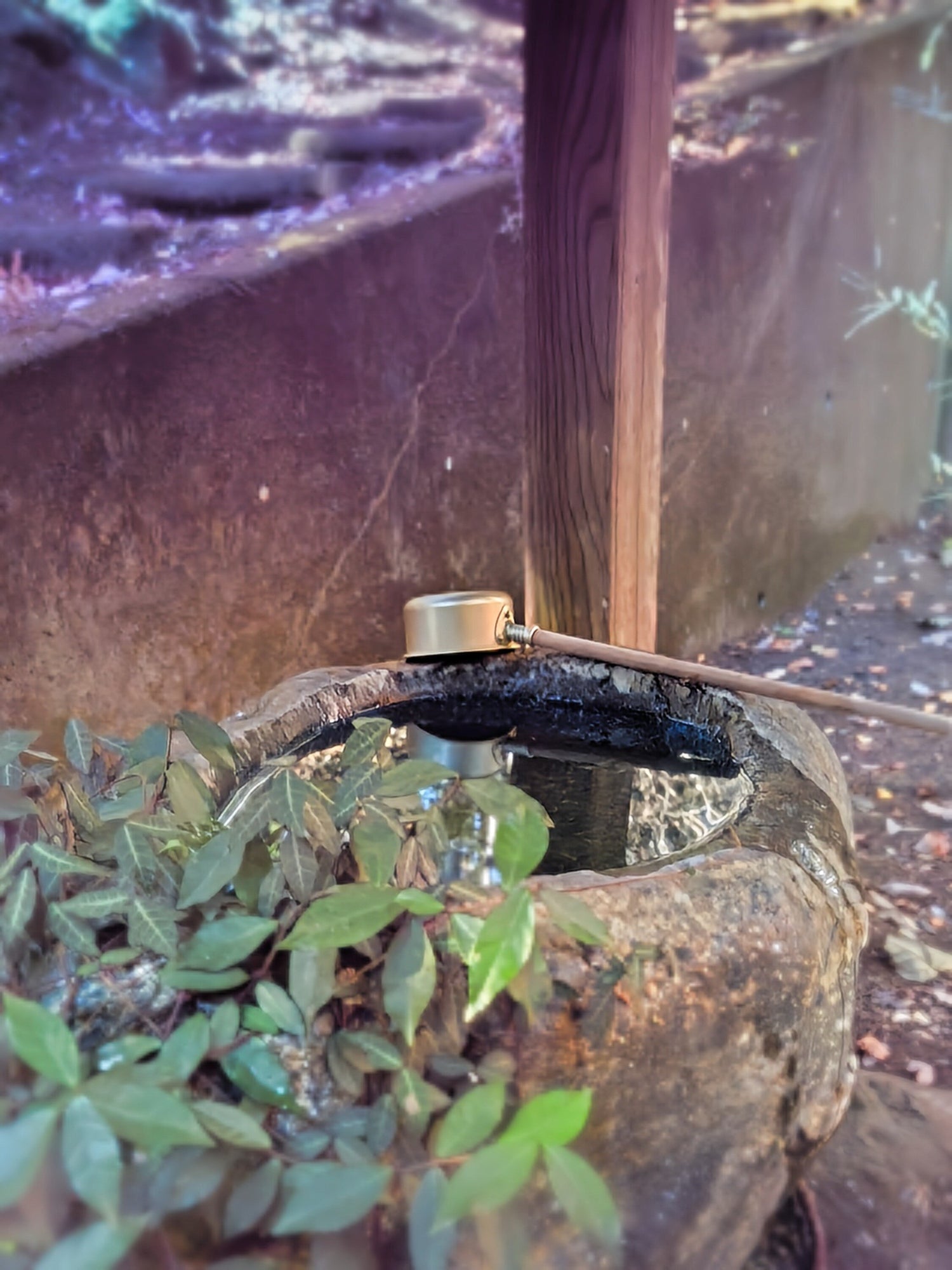 静かな境内にあって、参拝者が手と口を浄める手水。