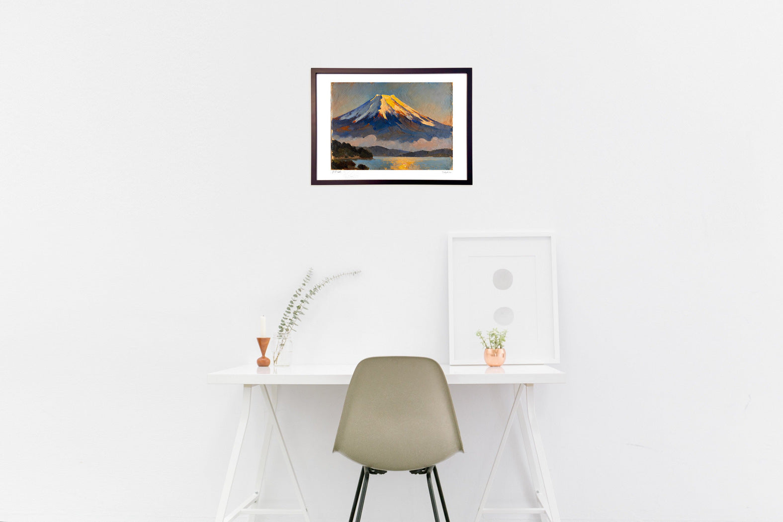 フレームカラーは作品画像の額縁でお届けします。 ご希望があれば変更も可能。ホワイト・ナチュラル・ブラウン・ブラックからお選び頂けます。ご希望の場合は、ご注文時備考欄に「○○フレーム希望」とご記入ください。