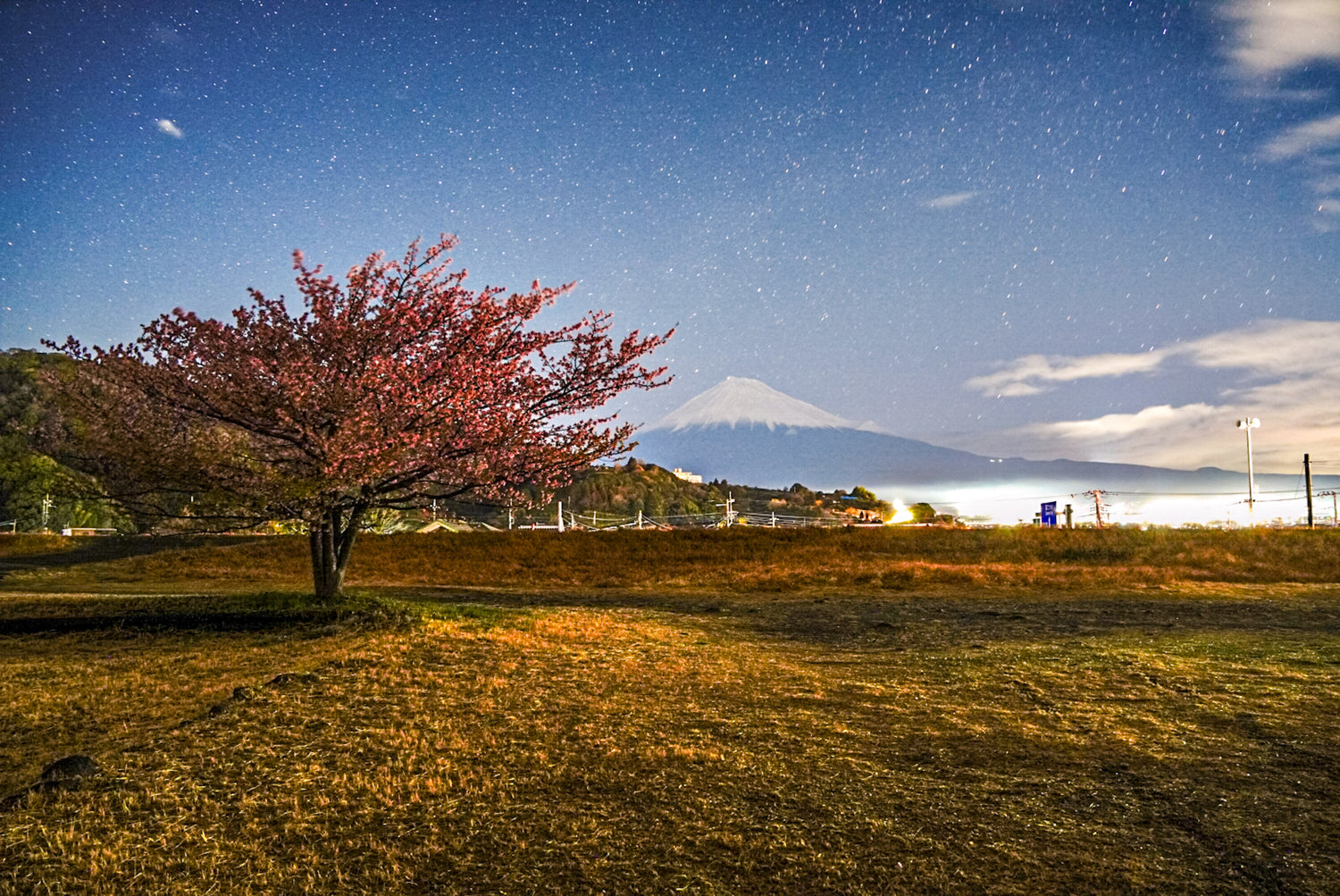 春まだ浅い 2月の終わりに 雨上がり タップリ冠雪した富士山と河津桜と雲海を撮影しました