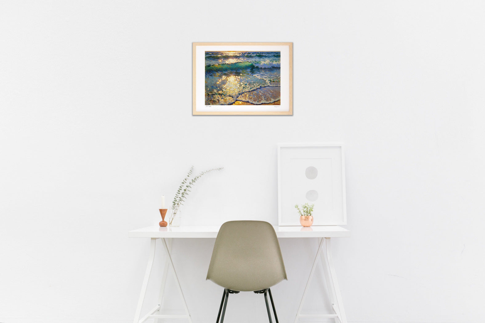 フレームカラーは作品画像の額縁でお届けします。 ご希望があれば変更も可能。ホワイト・ナチュラル・ブラウン・ブラックからお選び頂けます。ご希望の場合は、ご注文時備考欄に「○○フレーム希望」とご記入ください。