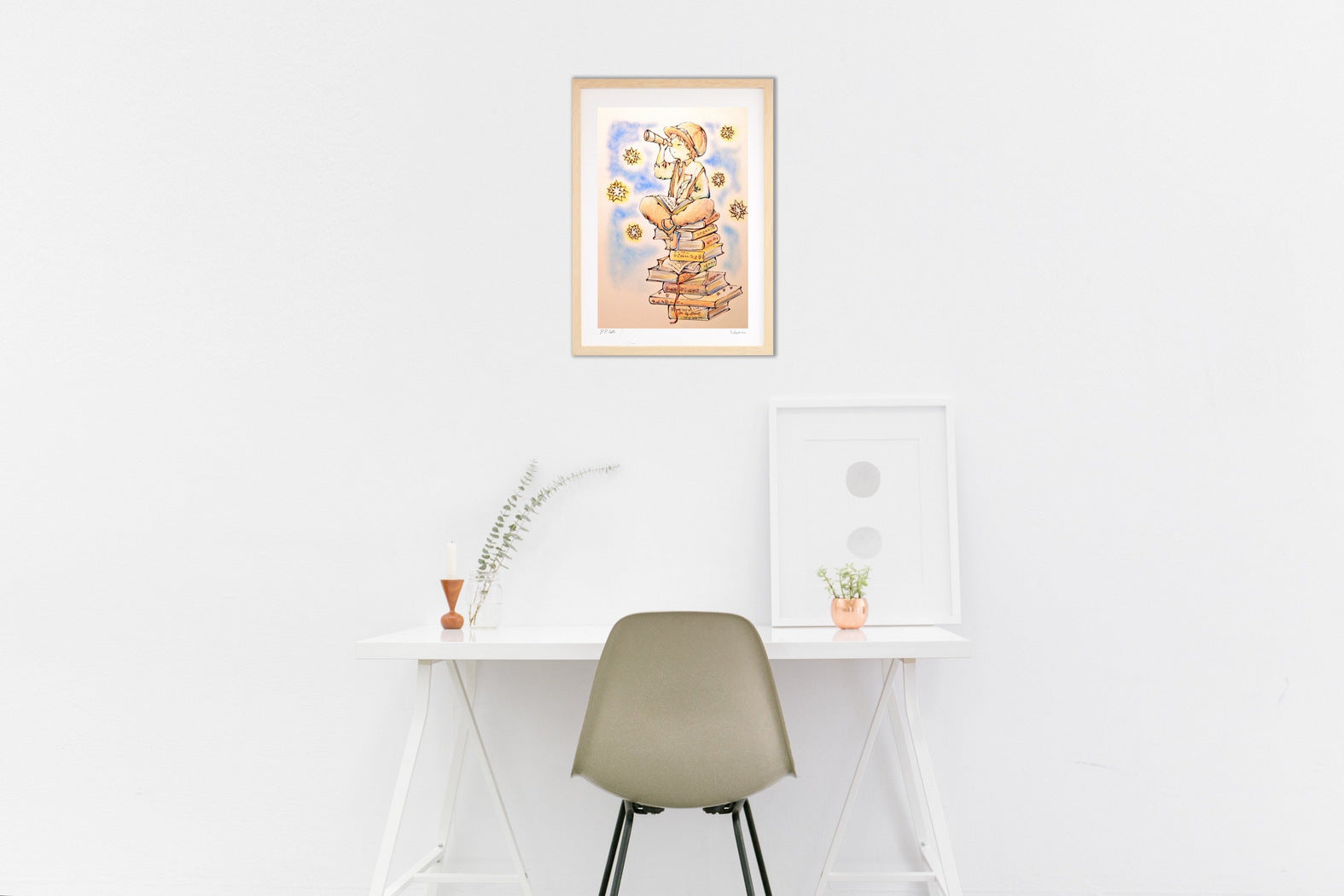 フレームカラーは作品画像の額縁でお届けします。 ご希望があれば変更も可能。ホワイト・ナチュラル・ブラウン・ブラックからお選び頂けます。ご希望の場合は、ご注文時備考欄に「○○フレーム希望」とご記入ください。