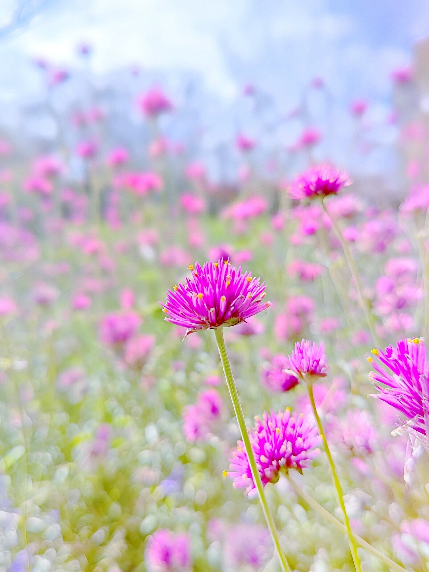 一面に広がる千日紅(センニチコウ)の畑。
