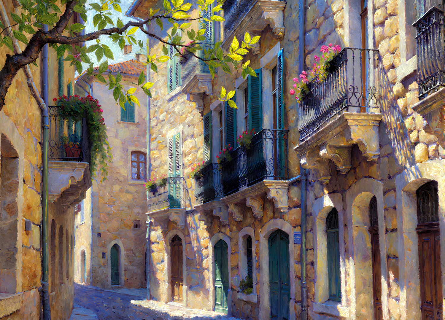 春のヨーロッパの狭い通り