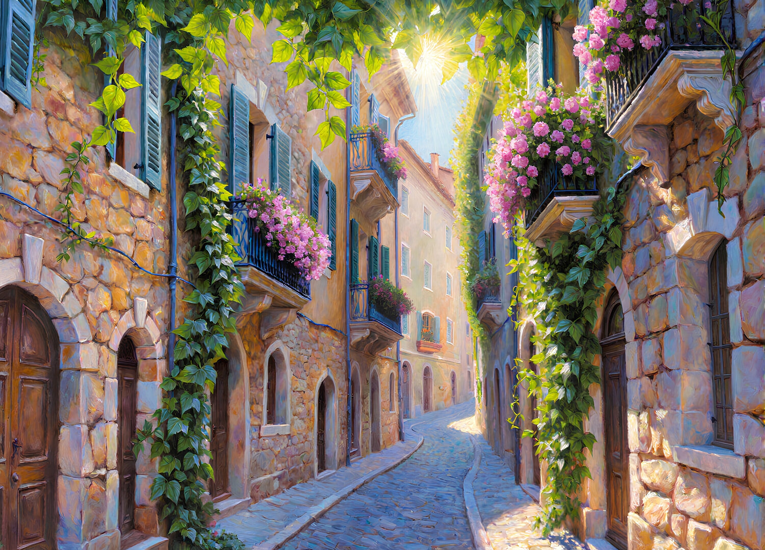 春のヨーロッパの狭い通り