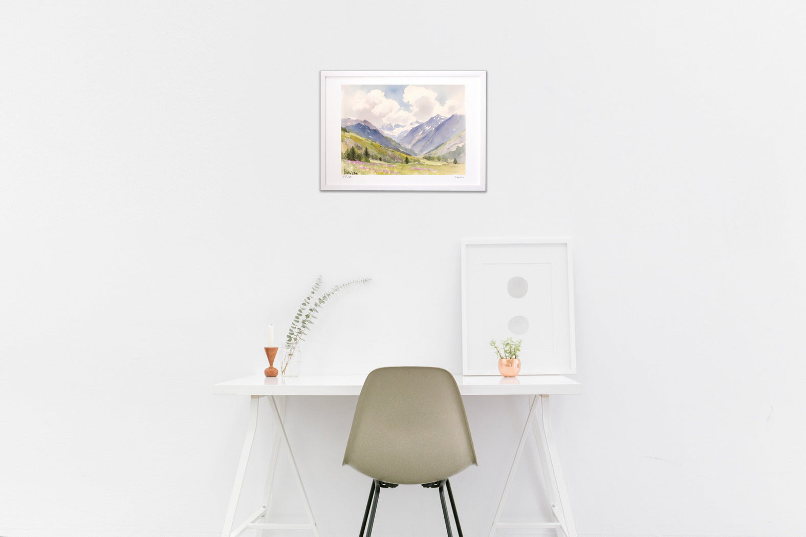 あゆわらの企画・制作・販売の作品。 画用紙のような質感の高級アート紙を採用。 発色が豊かなので繊細な色を忠実に再現。 印画紙ではないので、絵なのか写真なのか迷う不思議な印象です。 紙に光沢がなく、光を反射しないので、 蛍光灯の光で作品が見えづらくなることもありません。 色の再現性もこだわりました。 色調整は、最新技術で厳密に行うことが出来ます。正確に色を再現できるデジタル印刷で一枚一枚制作。 品質をチェックし、合格したものにあゆわらのエンボス印を入れて完成となります。