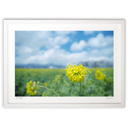 あゆわらの企画・制作・販売の作品。 画用紙のような質感の高級アート紙を採用。 発色が豊かなので繊細な色を忠実に再現。 印画紙ではないので、絵なのか写真なのか迷う不思議な印象です。 紙に光沢がなく、光を反射しないので、 蛍光灯の光で作品が見えづらくなることもありません。 色の再現性もこだわりました。 色調整は、最新技術で厳密に行うことが出来ます。正確に色を再現できるデジタル印刷で一枚一枚制作。 品質をチェックし、合格したものにあゆわらのエンボス印を入れて完成となります。