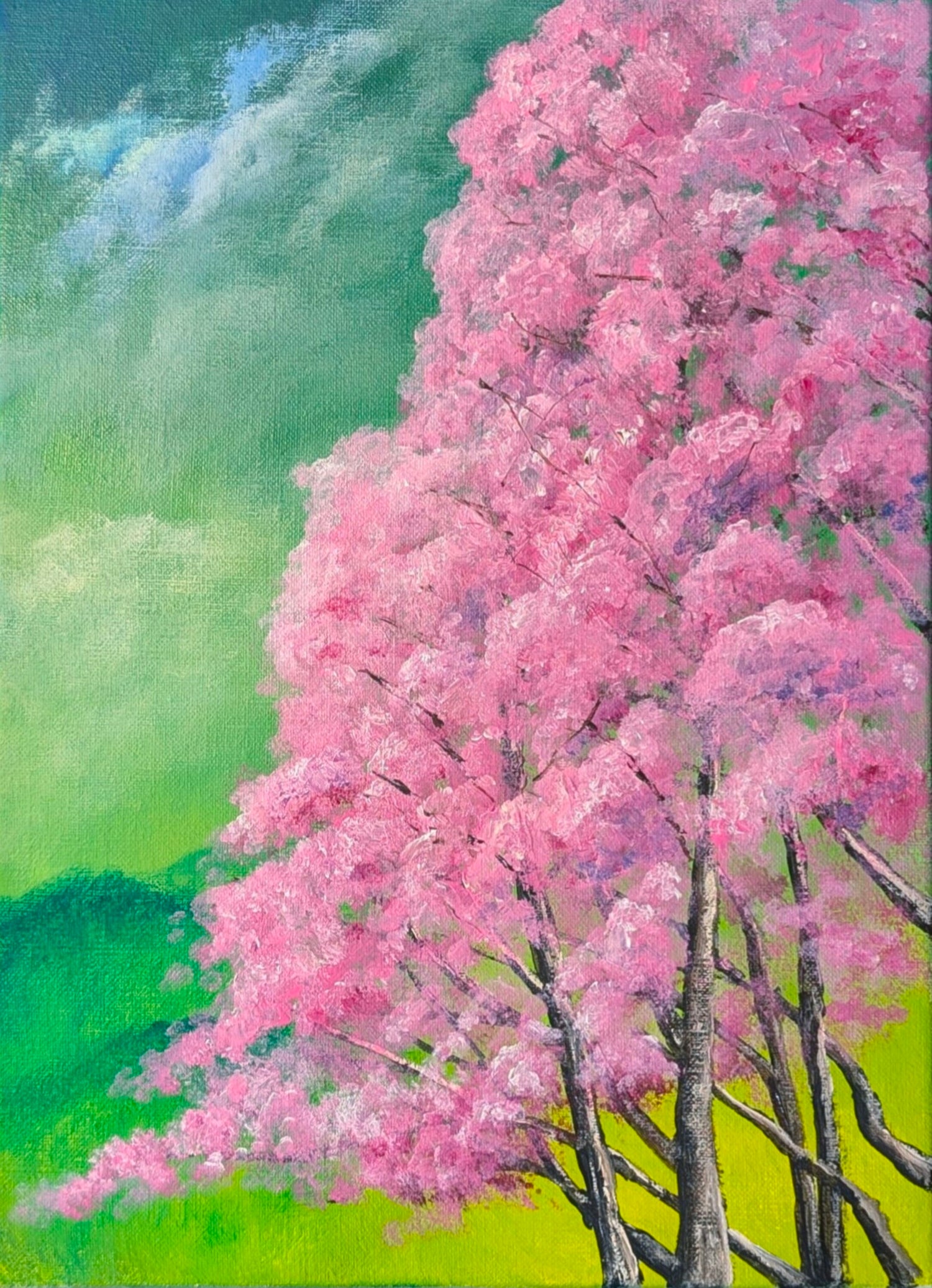 待ち遠しい春を思い、ほのぼのとした色合いで桜の迫力を出しました。