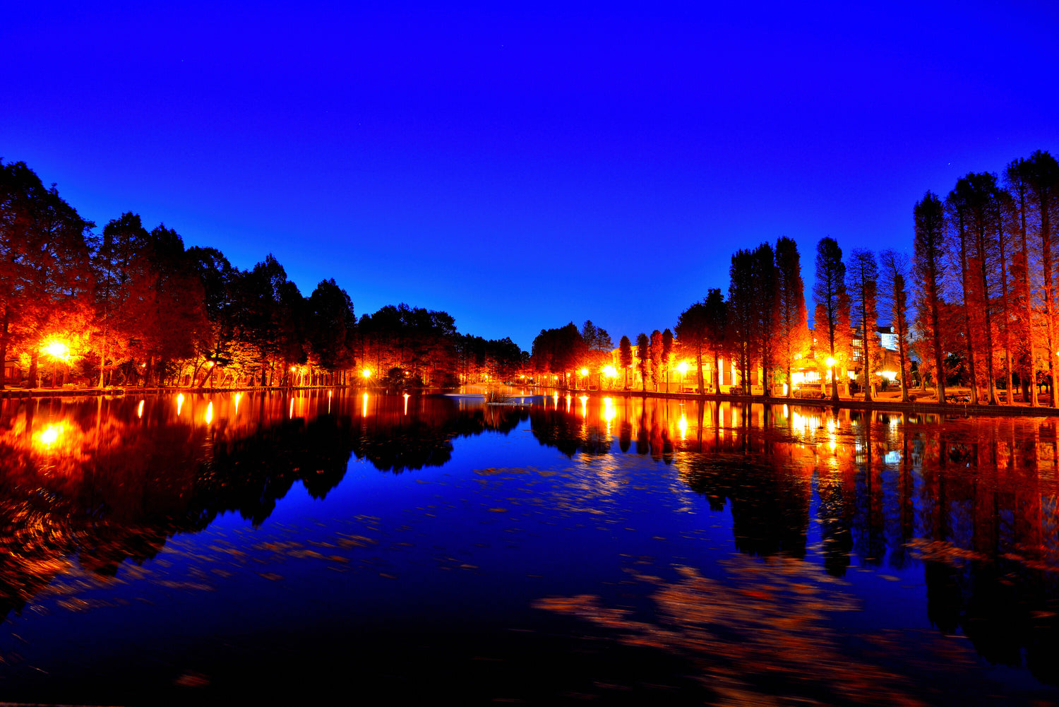 さいたま市南区にある溜池で約100万年前に形成された天然の溜池です、メタセコイアやラクウショウが溜池の両岸に並木を形成し、秋には紅葉しそれがライトアップで照らし出されて幻想的な光景を観ることができる。