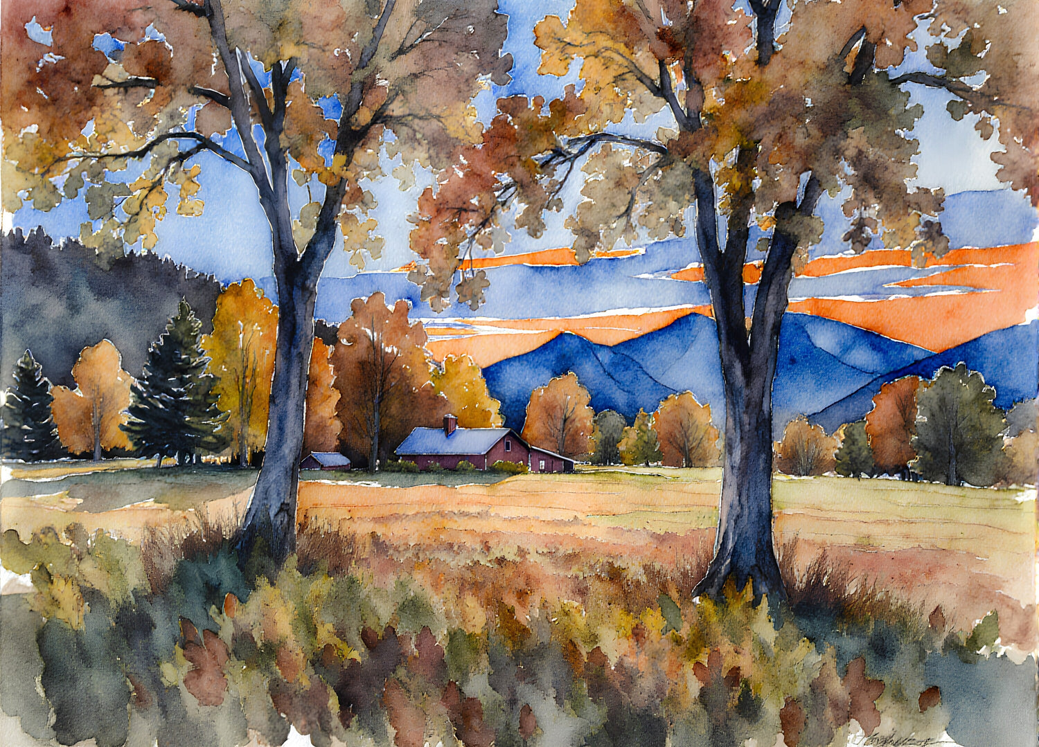 日の落ちた晩秋の茶色く枯れた木々が哀愁を誘います。