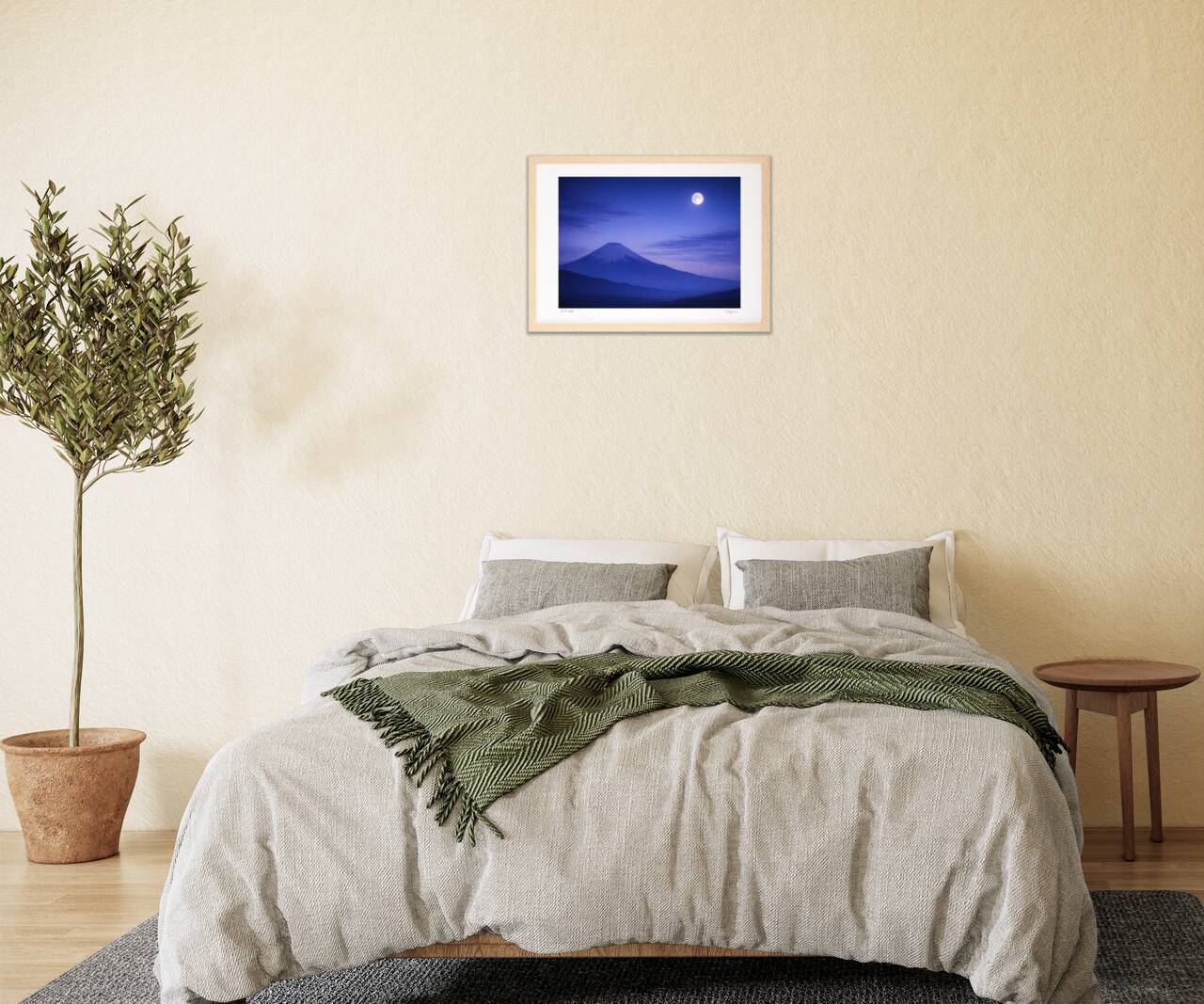 制作ではデジタル技術を取り入れつつ、構図・空気感・余白のバランスを重視し、絵画としての完成度を最優先に一枚ずつ丁寧に仕上げています。