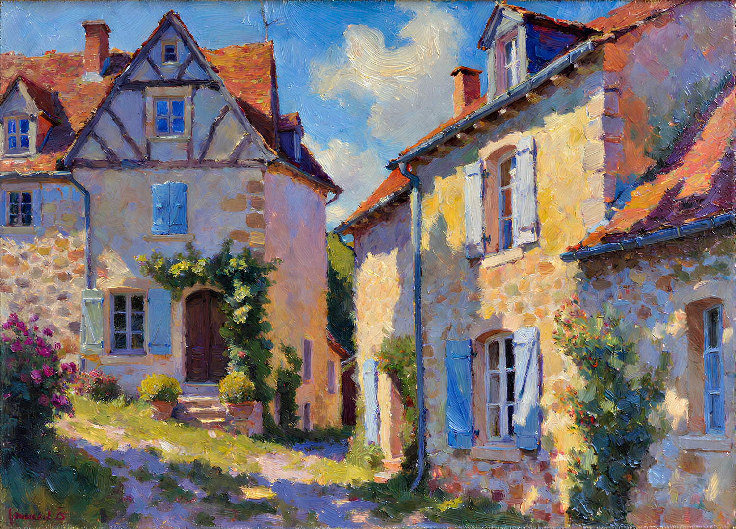 暖かい日差しの下で輝く家々
