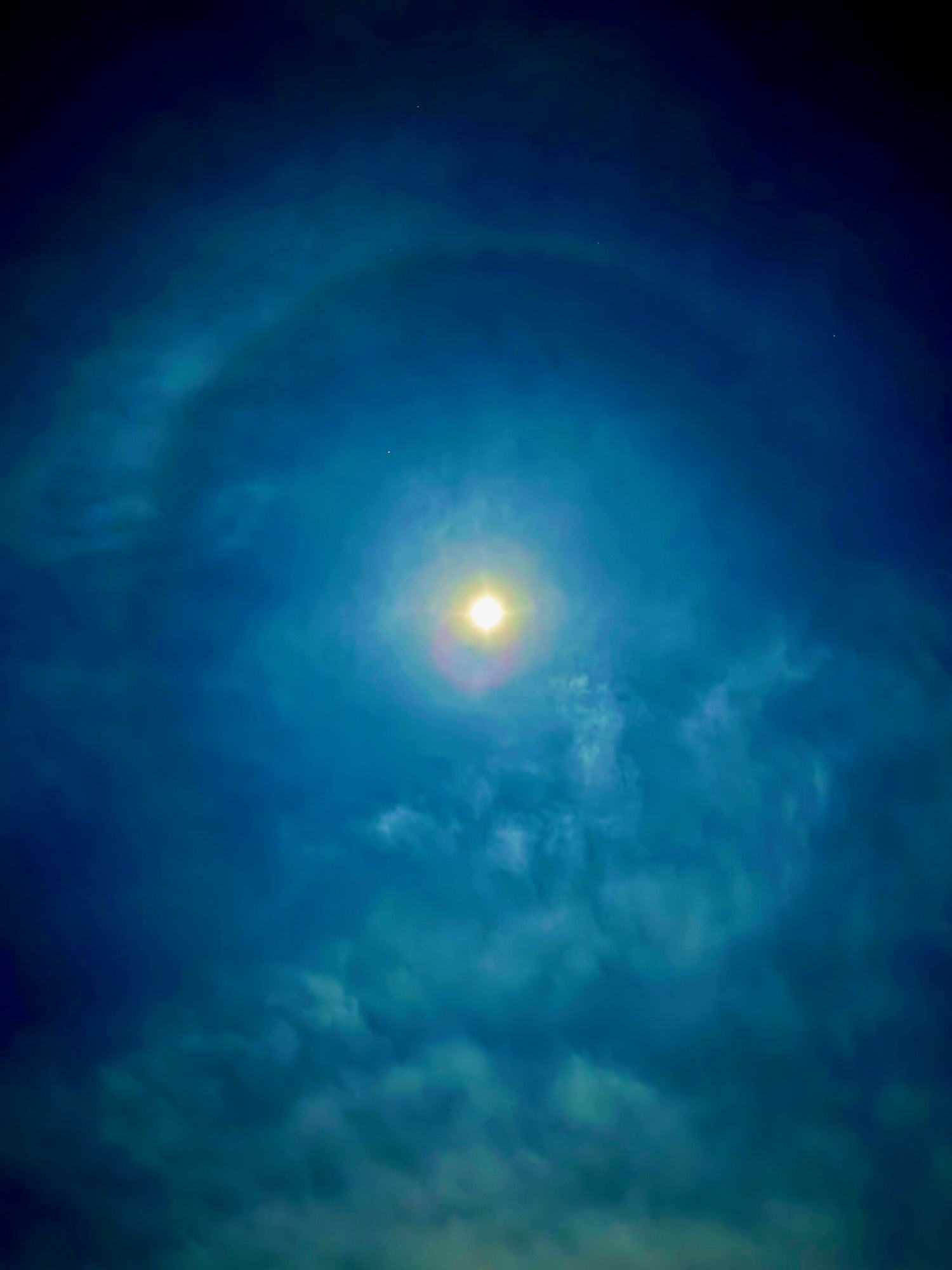 帰宅中に空を眺めたら月に輪っかができていた。