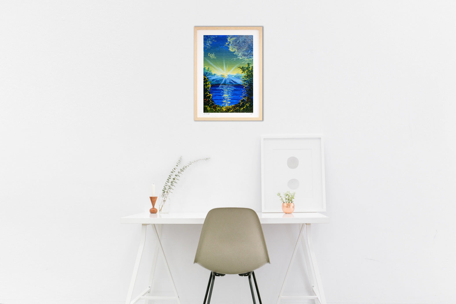 フレームカラーは作品画像の額縁でお届けします。 ご希望があれば変更も可能。ホワイト・ナチュラル・ブラウン・ブラックからお選び頂けます。ご希望の場合は、ご注文時備考欄に「○○フレーム希望」とご記入ください。