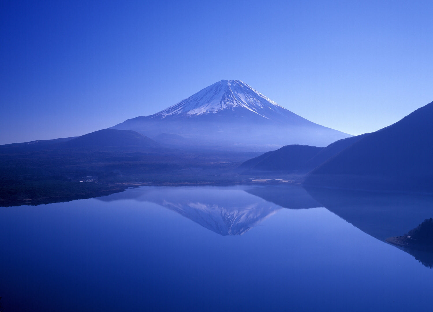 富士山 本栖湖 逆さ富士 湖 青の風景