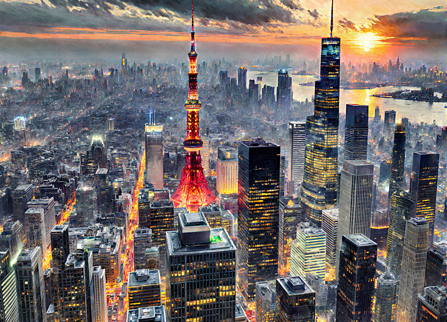 夕日に照らされた都市