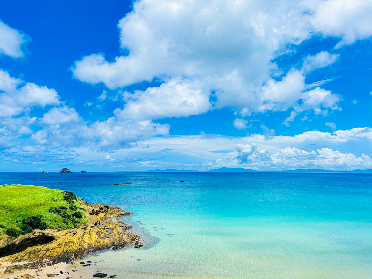 透き通る海と大きな雲に、思わず深呼吸したくなる景色です。