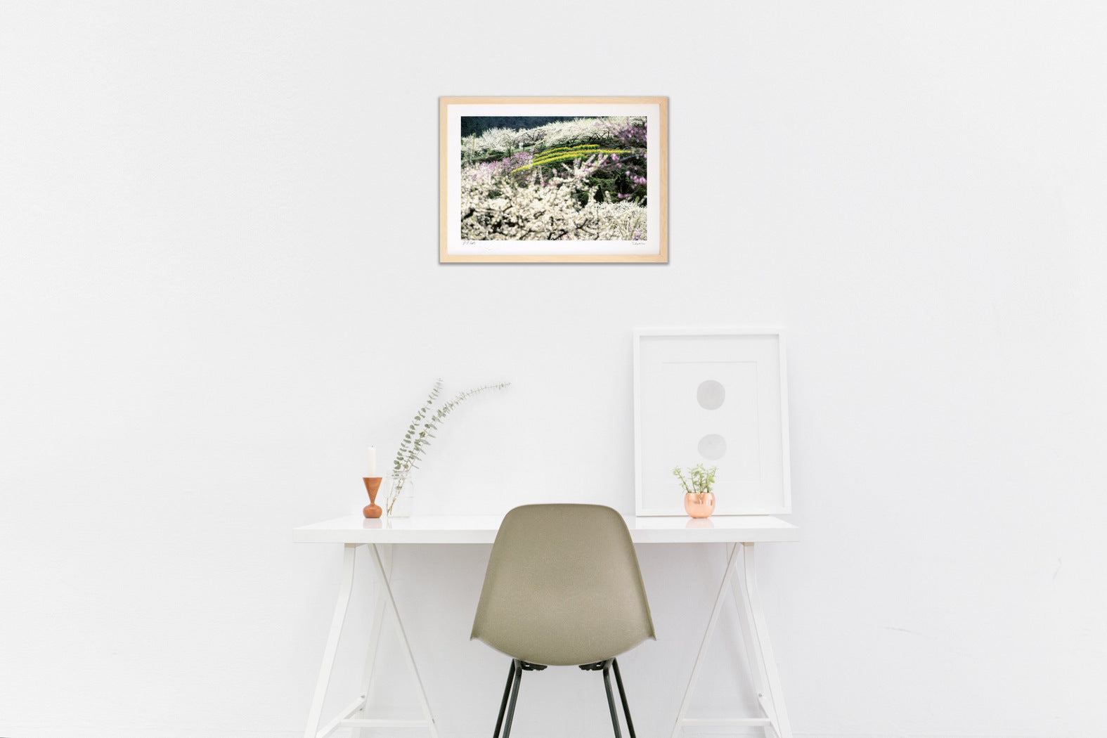 フレームカラーは作品画像の額縁でお届けします。 ご希望があれば変更も可能。ホワイト・ナチュラル・ブラウン・ブラックからお選び頂けます。ご希望の場合は、ご注文時備考欄に「○○フレーム希望」とご記入ください。