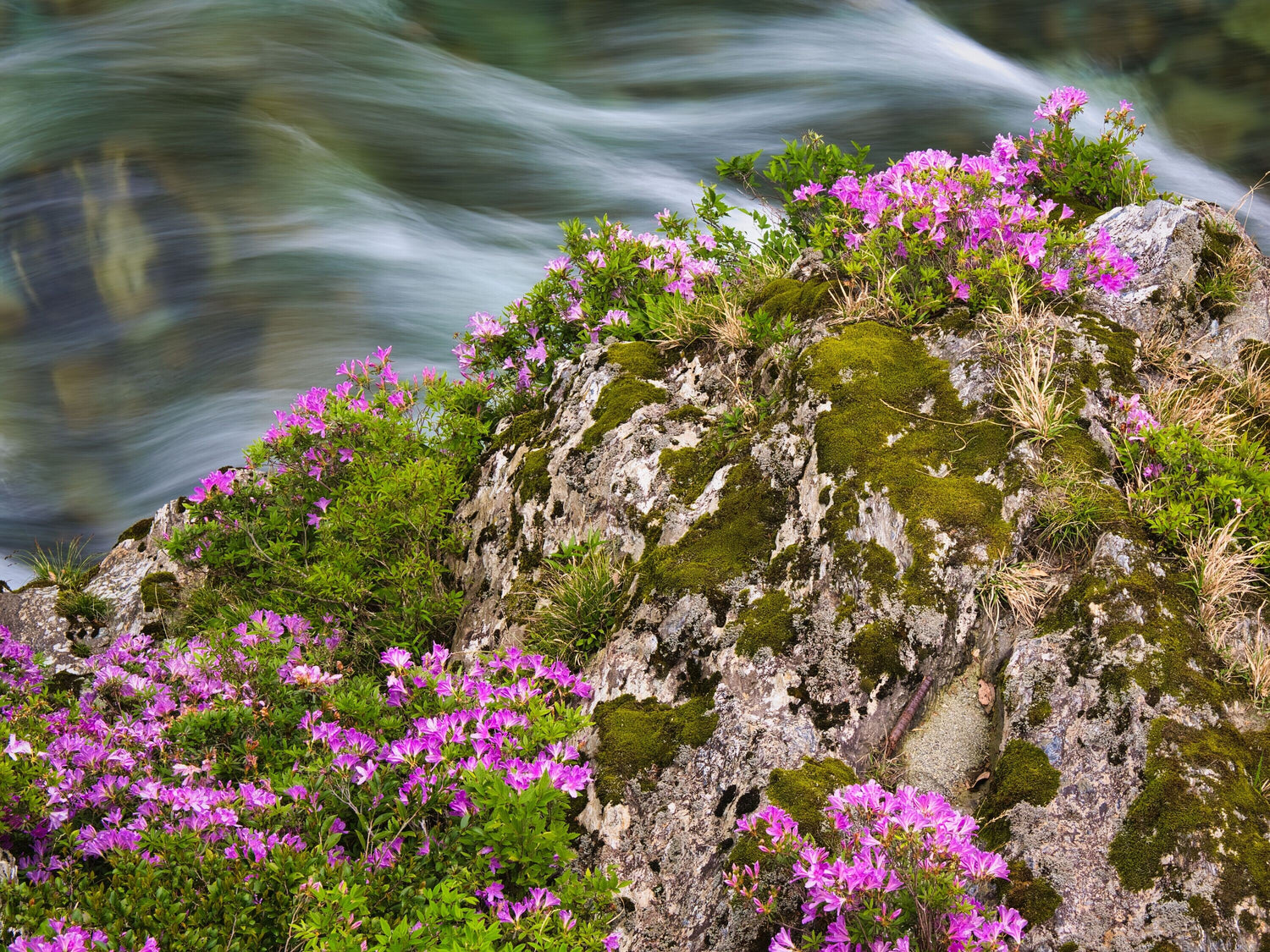ここのイワツツジの花は一斉に咲かずまばらに咲いていくのですが、丁度すべての花が満開になった状態を撮ることができました。
