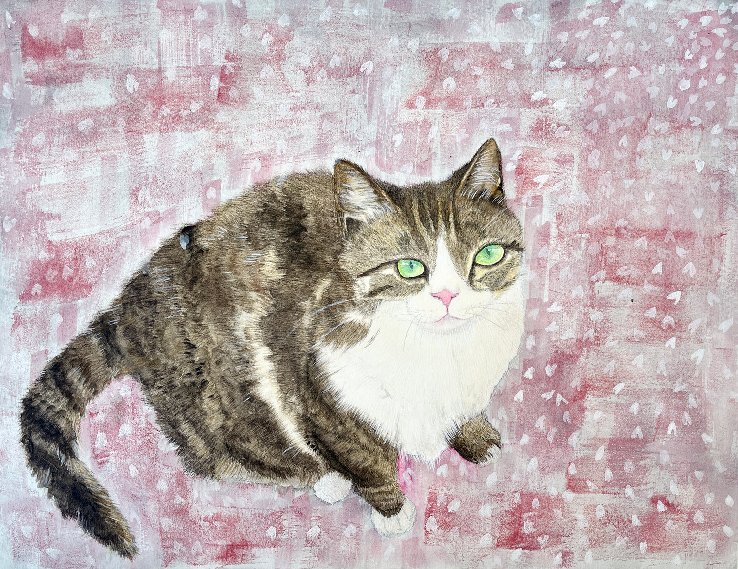 そらから舞い落ちる花びらは猫たちにとっても心地よい情景なのだろうか。