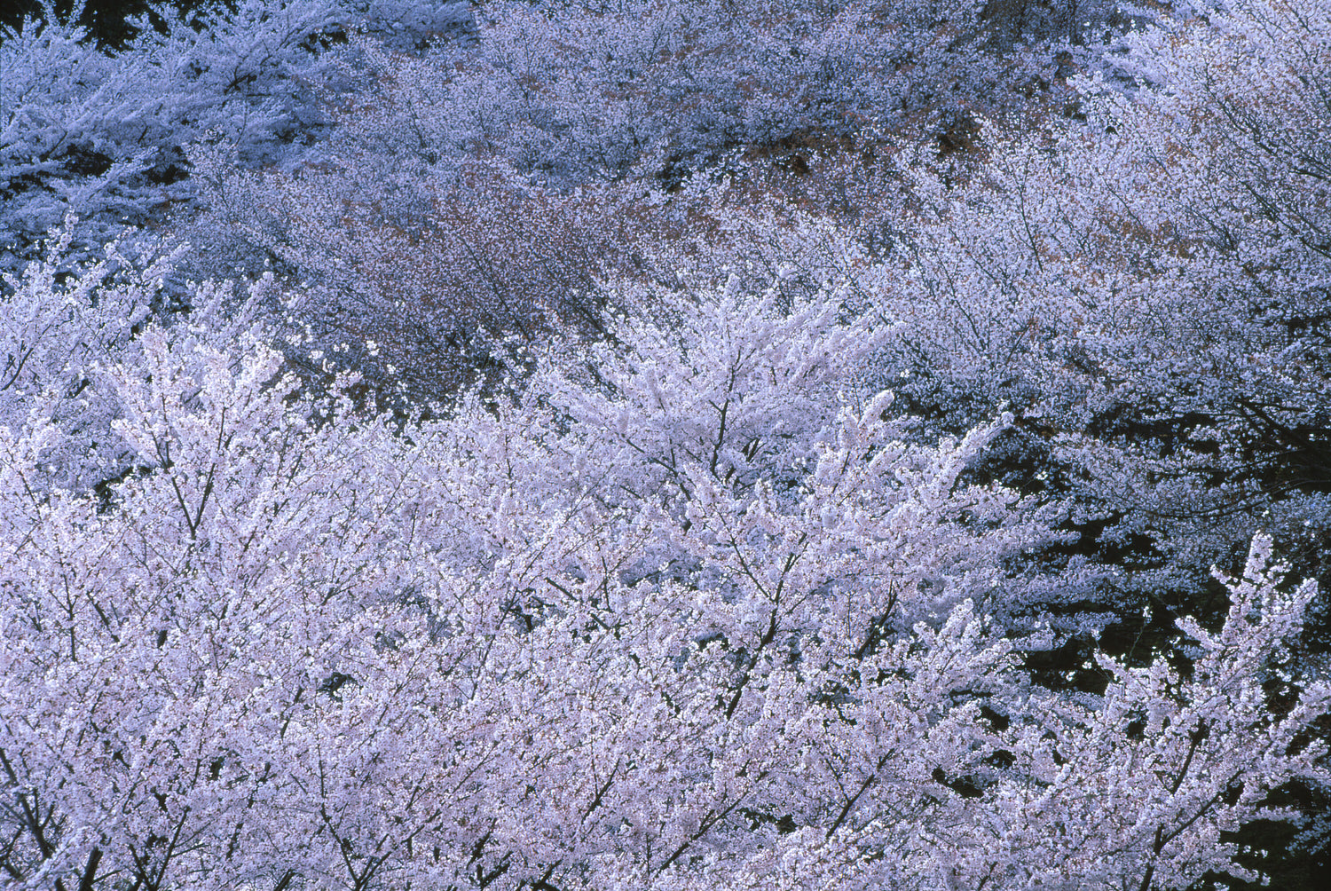 琵琶湖湖北で満開の桜に出会えたので、異なる種類の桜を望遠レンズでひとつの画面に取り込み。