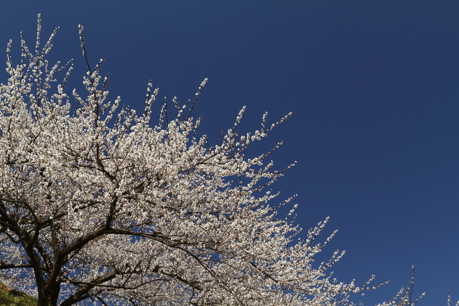 白梅と青空のコントラストが印象的だったので、対比させて撮影。
