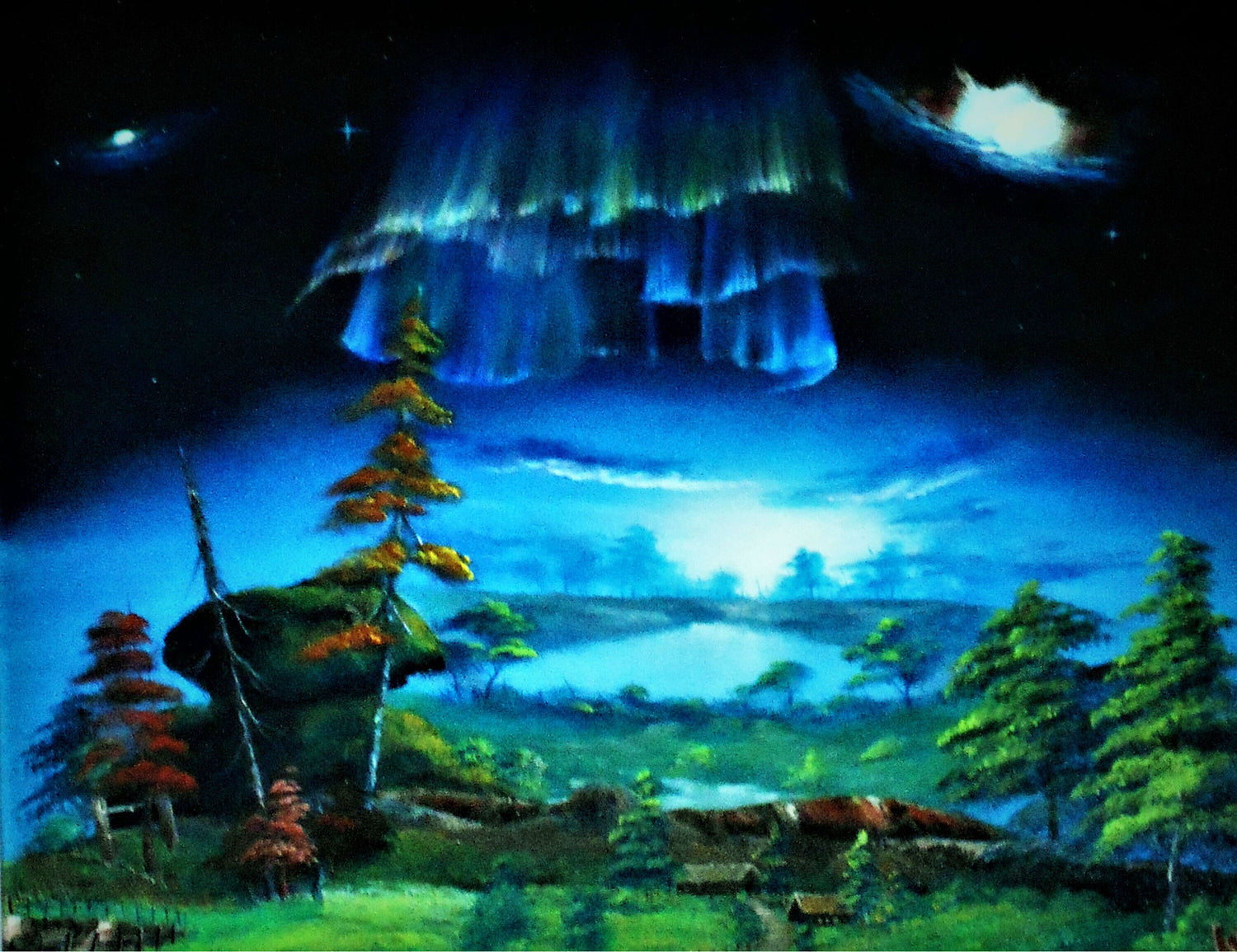 アラスカの大地・・・かすかにたなびくオーロラ。