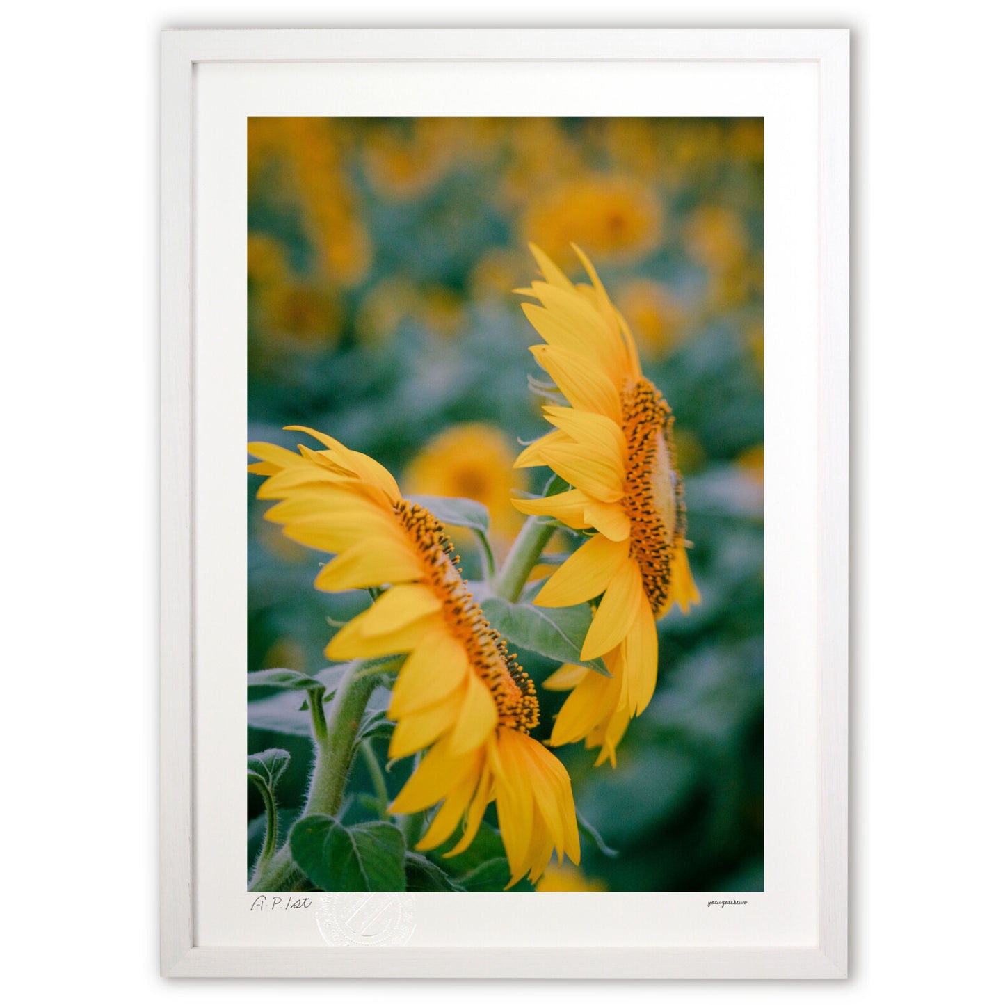 あゆわらの企画・制作・販売の作品。 画用紙のような質感の高級アート紙を採用。 発色が豊かなので繊細な色を忠実に再現。 印画紙ではないので、絵なのか写真なのか迷う不思議な印象です。 紙に光沢がなく、光を反射しないので、 蛍光灯の光で作品が見えづらくなることもありません。 色の再現性もこだわりました。 色調整は、最新技術で厳密に行うことが出来ます。正確に色を再現できるデジタル印刷で一枚一枚制作。 品質をチェックし、合格したものにあゆわらのエンボス印を入れて完成となります。