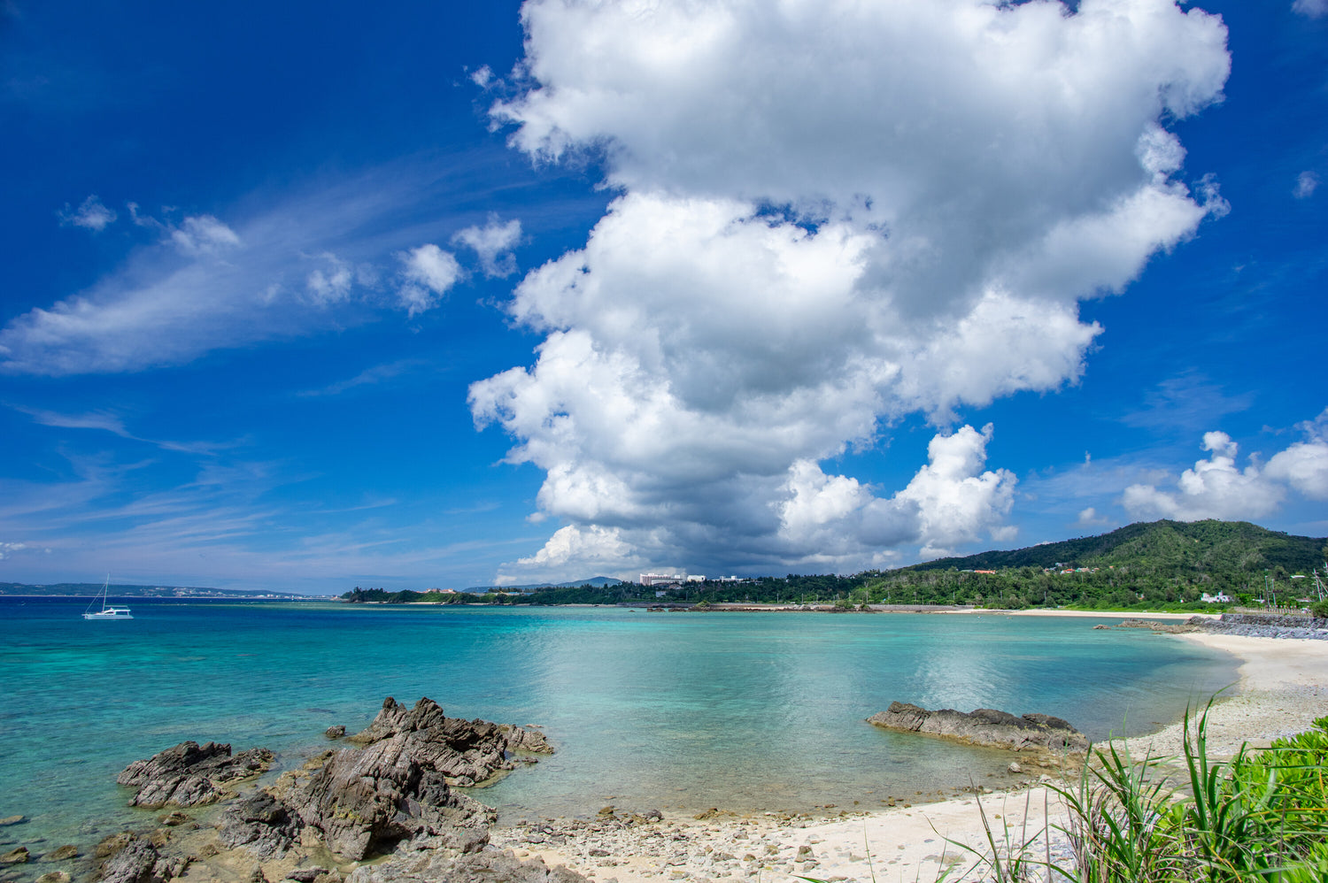 沖縄の北部へ向かう途中 青い空と青い海が広がる